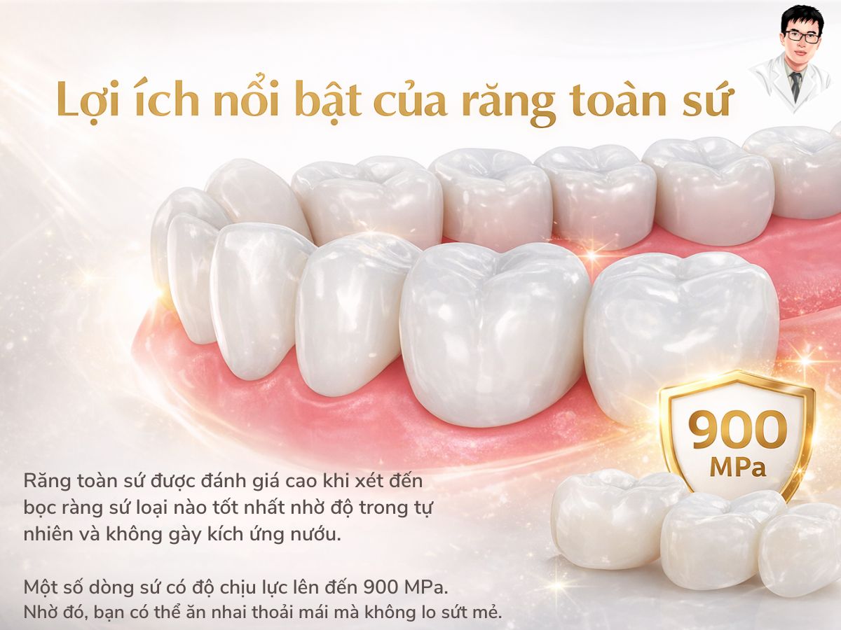Bọc răng sứ loại nào tốt nhất là câu hỏi được nhiều người quan tâm khi muốn cải thiện thẩm mỹ và chức năng răng. Bài viết sẽ so sánh chi tiết các loại răng sứ phổ biến, từ răng sứ kim loại đến toàn sứ cao cấp, giúp bạn chọn được loại phù hợp nhất về độ bền, chi phí và tính thẩm mỹ.
