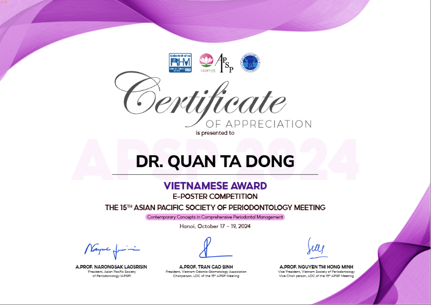 BS Tạ Đông Quân trình bày về một trường hợp điều trị tụt nướu tại hội nghị Nha Chu Châu Á APSP (2024)